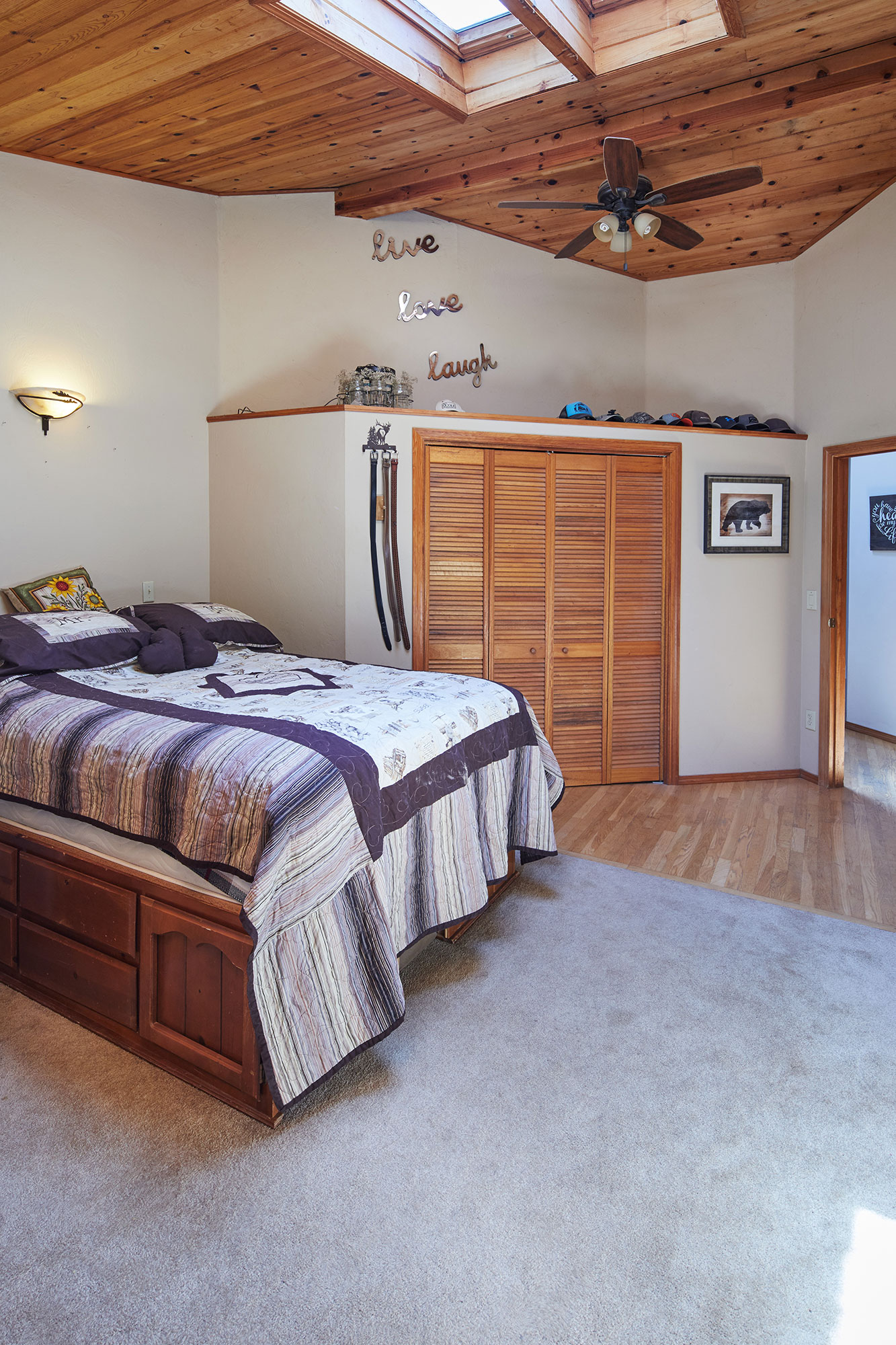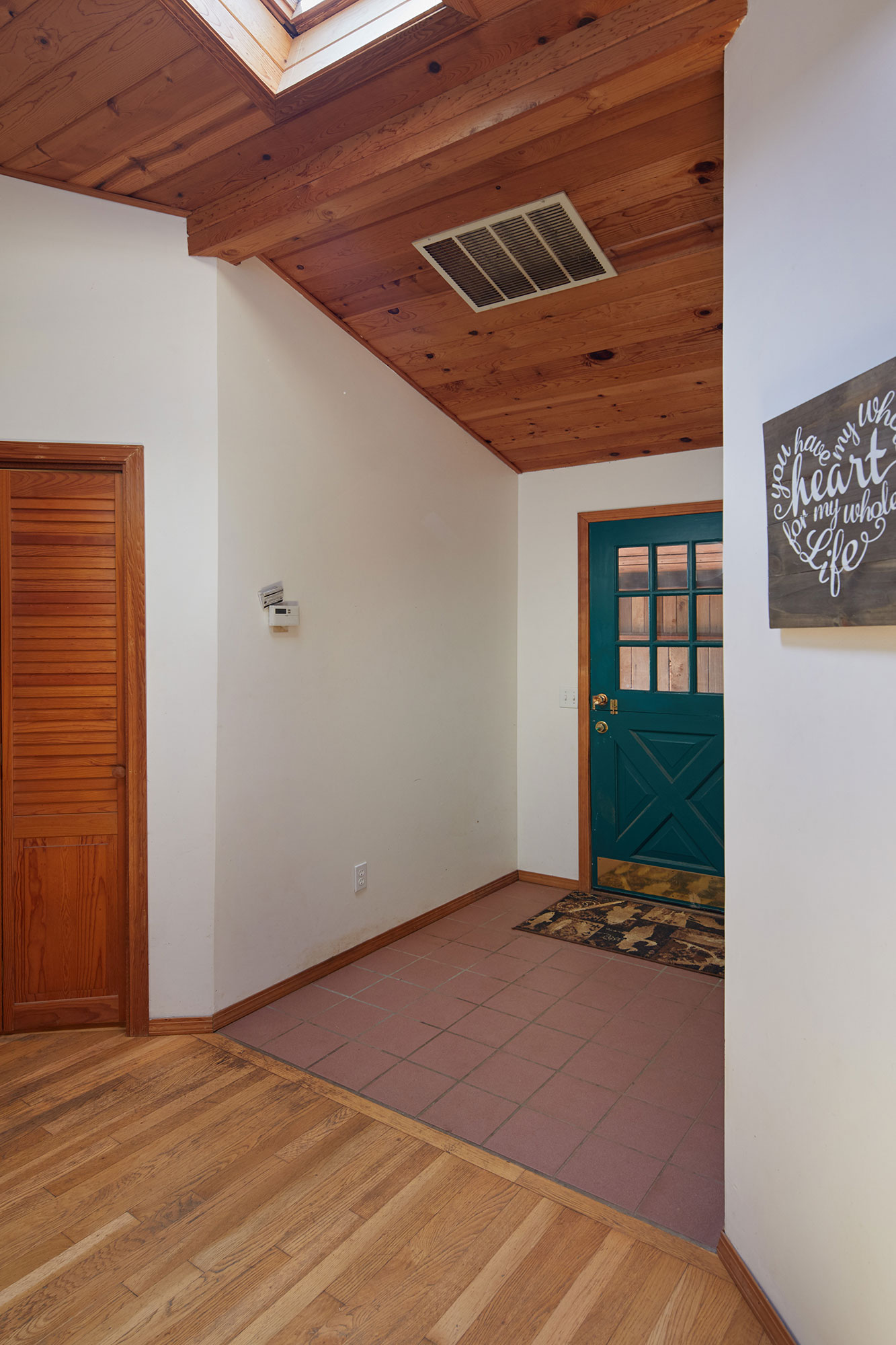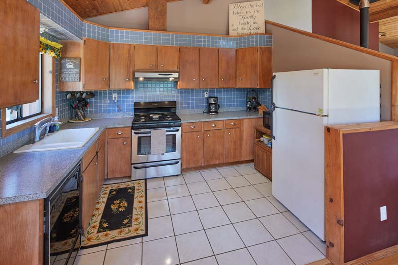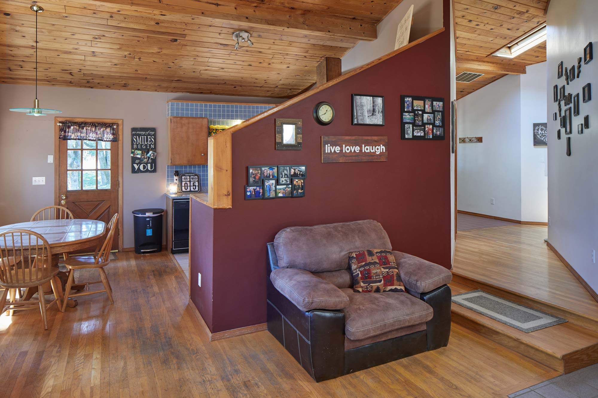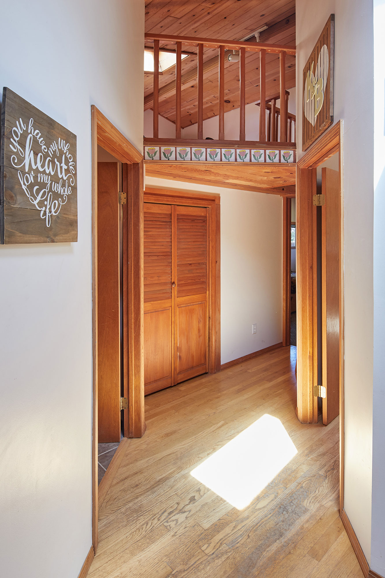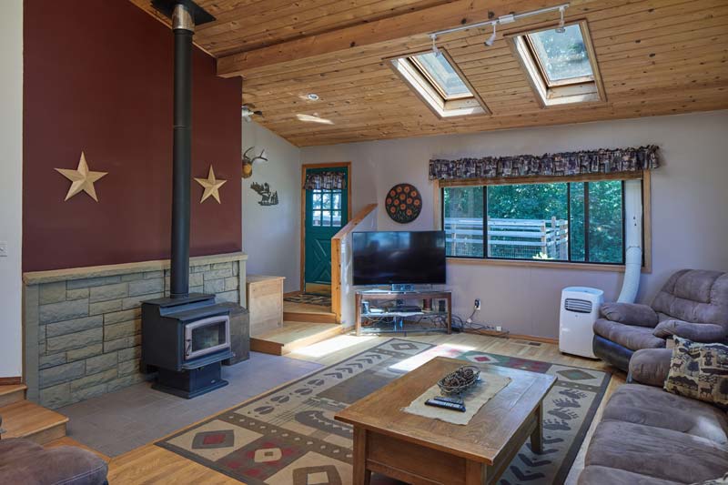 As you walk in the door dramatic knotty pine open beamed ceilings and real oak hardwood floors greet you with a sense of quality and character. Main bathroom has just been updated with new ceramic tile. An up to date kitchen features solid wood cabinets and the openness lends a casual feel to the friendly floor plan. Numerous skylights make the home cheerful even on darkest days. A "kid magnet" play loft is cleverly placed with abundant storage beneath.