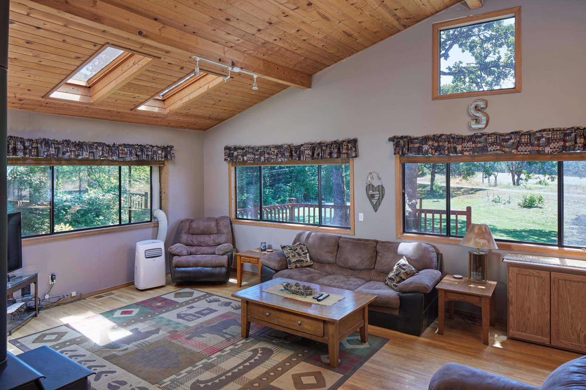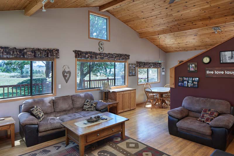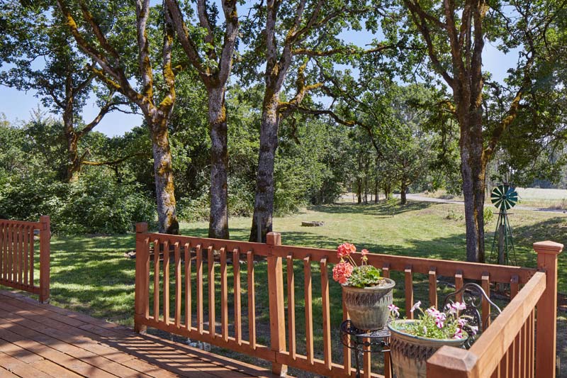 On the outside a large expanse of wrap around deck makes soaking in the in peaceful country setting a real pleasure. Out back you will find a private fenced play yard. Through another gate you will find a secure dog run.